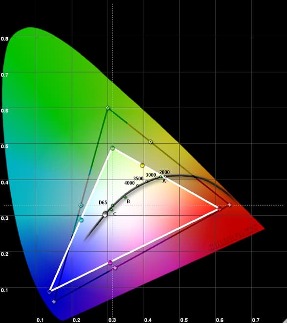 Цветовой охват лазерного InFocus IN008SL. Явно видно смещение в синюю область