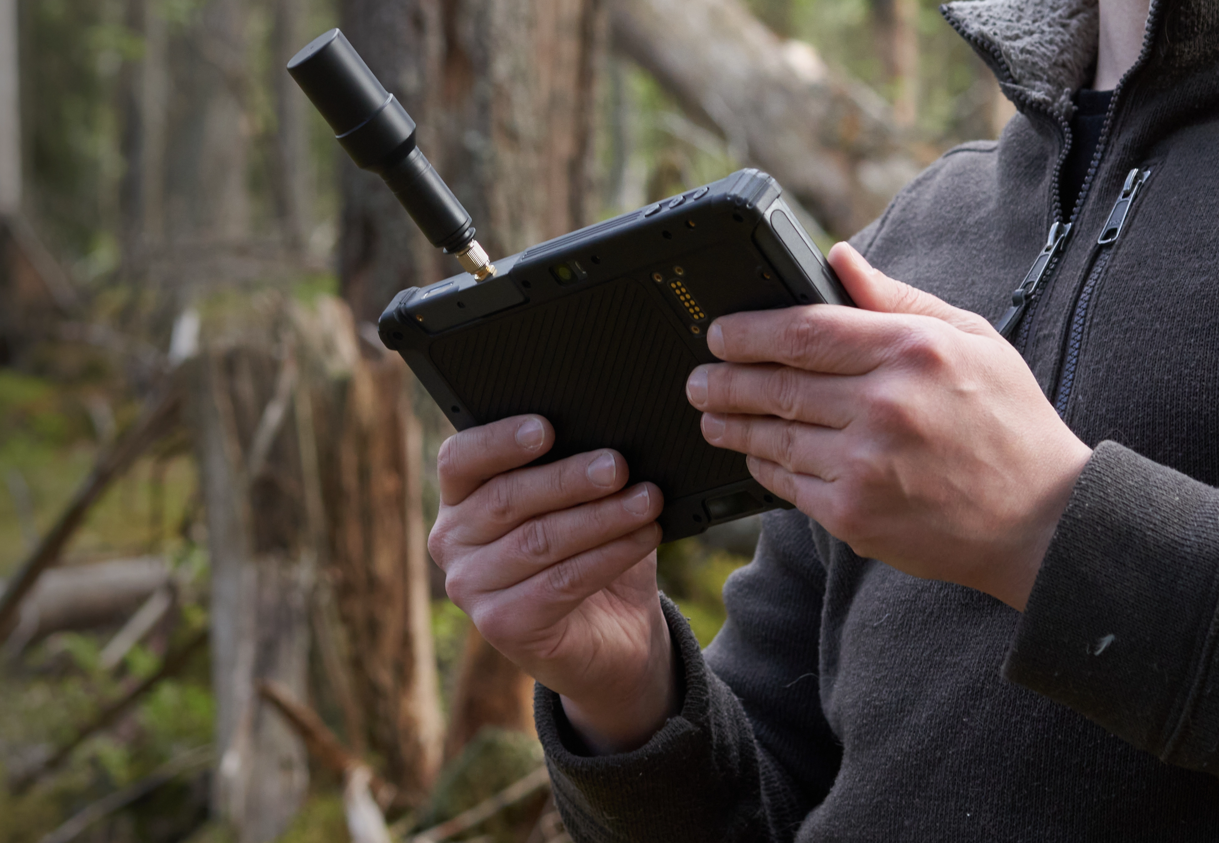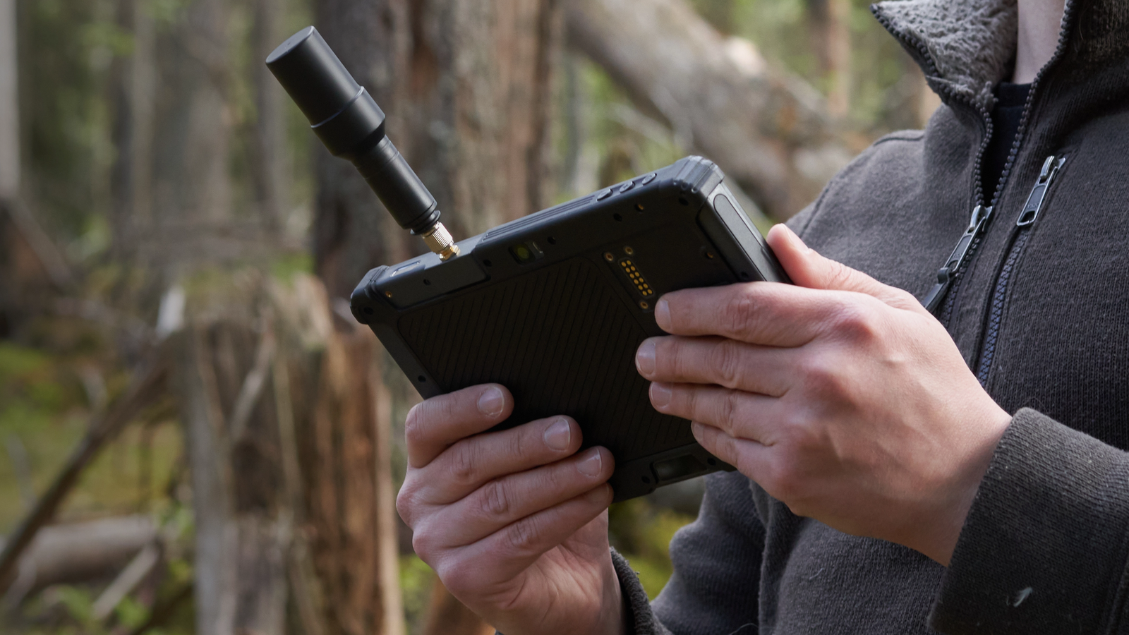 Встроенный промышленный RTK-модуль обеспечивает позиционирование с погрешностью до 60 см без поправок и до 2 см при подключении сервиса поправок. Предусмотрена защита от воды и пыли (IP67), рабочий диапазон температур от –20 °C до +60 °C, устойчивость к падениям с высоты 1,2 м.