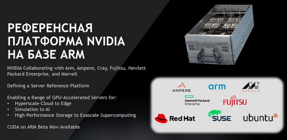 Здесь важно отметить, когда речь идет об архитектуре программных компонентов CUDA, в начале 2019 года было объявлено, что туда вендор добавит поддержку платформы ARM. И после официального анонса теперь весь инструментарий, который был доступен на других процессорах и платформах, также стал доступен на платформе ARM+GPU.
