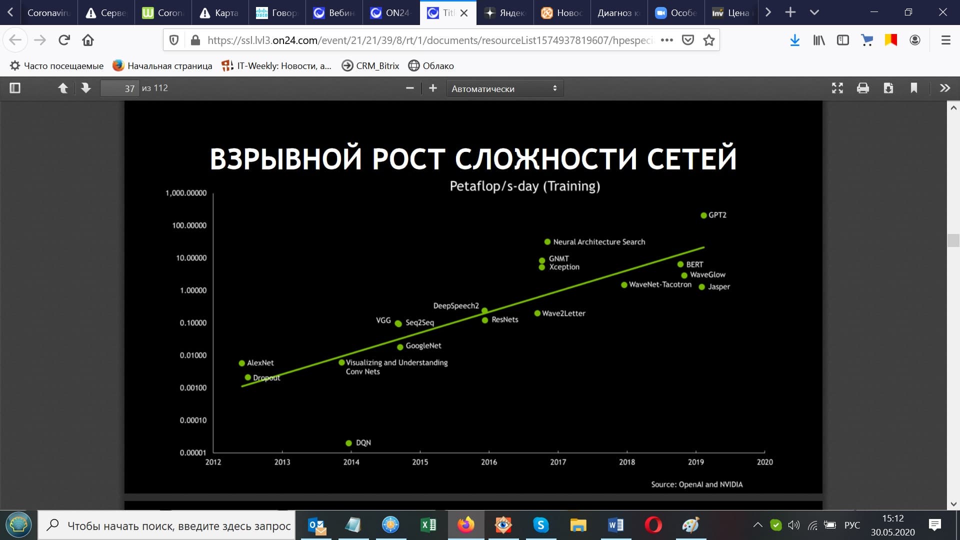 За последние 6-7 лет вычислительная сложность нейронных сетей выросла в 10 000 раз. Т.е. количество вычислений, которые нужно было в свое время сделать для классической сетки AlexNet по сравнению с архитектурами нейронных сетей, например, для распознавания голоса, выросла в 10 000 раз. Это очень хорошая иллюстрация того, почему графические процессоры настолько эффективны в решениях задач, связанных, например, с обучением нейронных сетей.