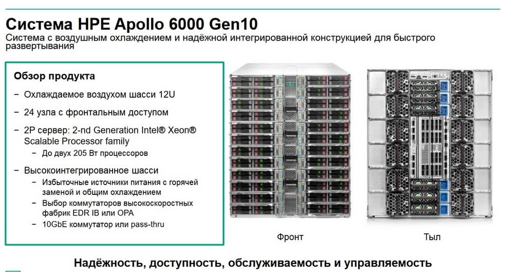 Система HPE Apollo 6000 Gen 10. Это система с воздушным охлаждением для построения вычислительных кластеров.