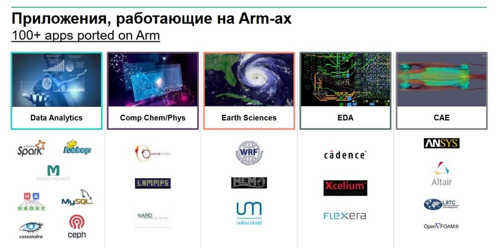 Кстати, если есть сомнения, насколько применима платформа ARM в принципе для тех или иных задач, на следующем слайде приведены примеры тех приложений, которые уже портированы для работы с ARM.