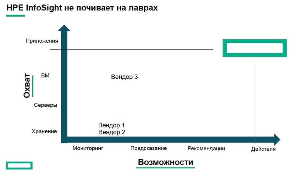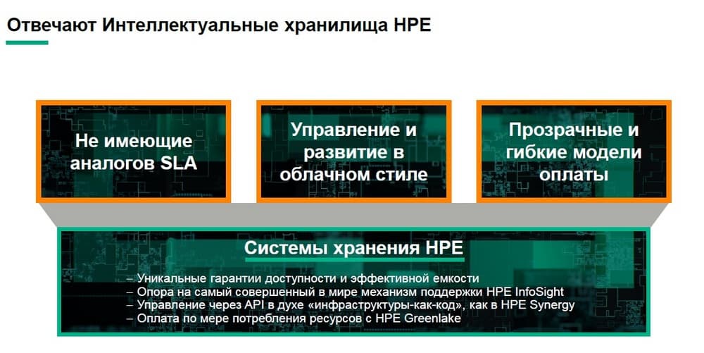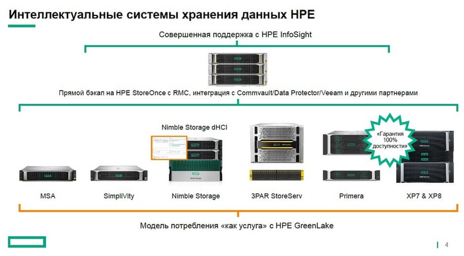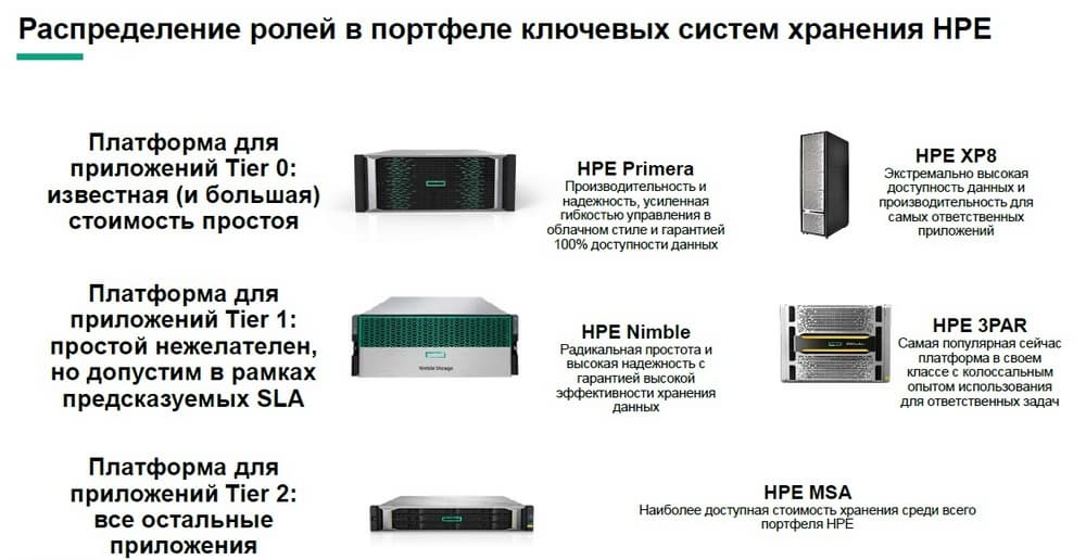 Хочется назвать интеллектуальными системами хранения MSA и XP, однако пока мы не будем их так называть, возможности интеграции с HPE InfoSight там пока недостаточно развиты, но такая интеграция обязательно будет.