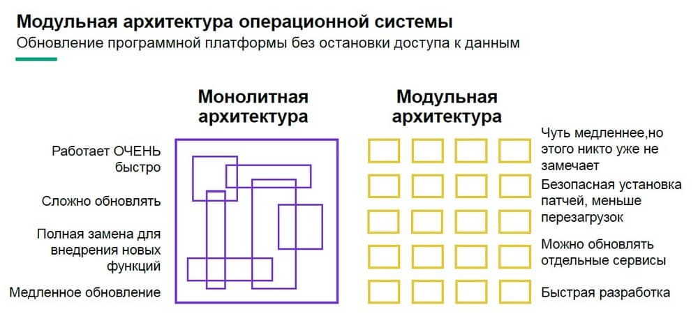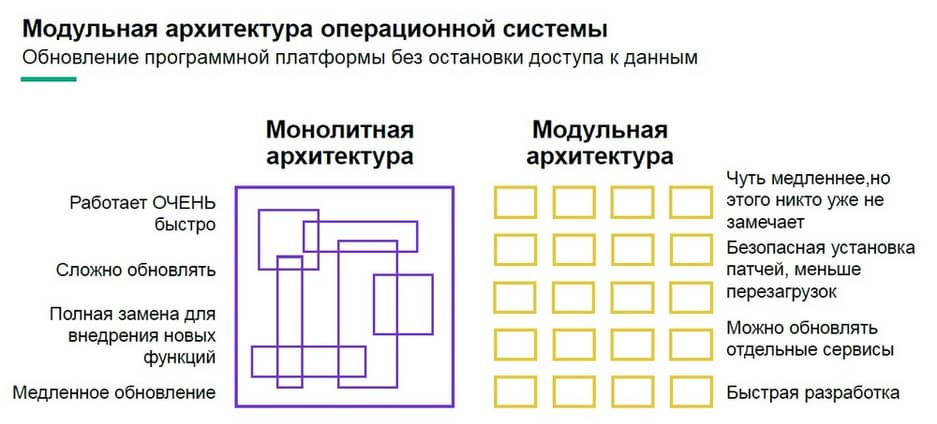 Также модульную архитектуру имеет и операционная система, она, в частности, позволяет устанавливать обновления 4.2, которая обновляет довольно много модулей в системе.