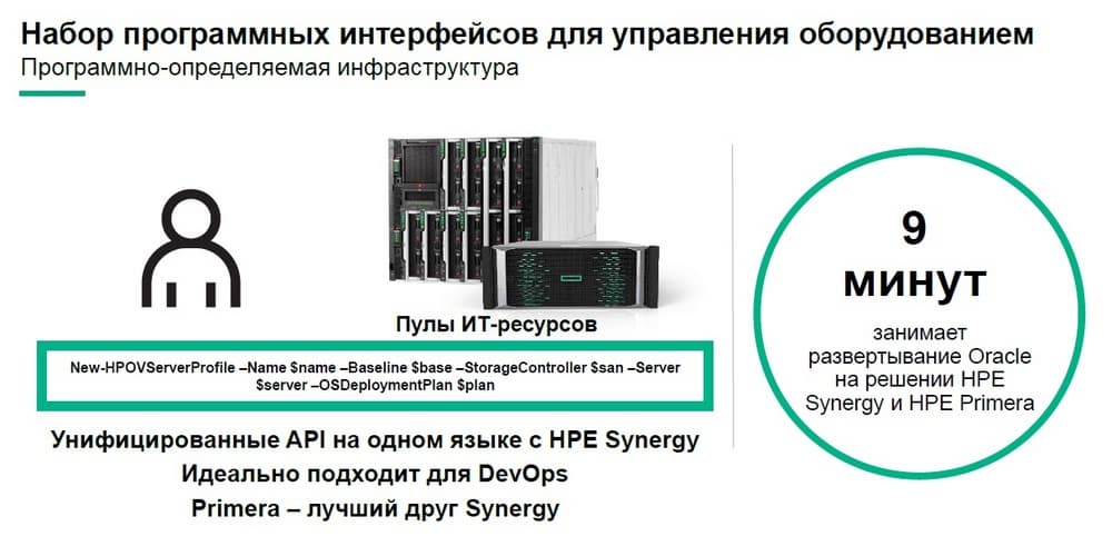Четвертый тезис – это удобство управления, стандартные и программируемые интерфейсы. Многие заказчики HPE уже автоматизируют управление своей инфраструктурой, выделение ресурсов, связку между разработчиками и «машинным отделением», чтобы все работало быстро и бесшовно.
