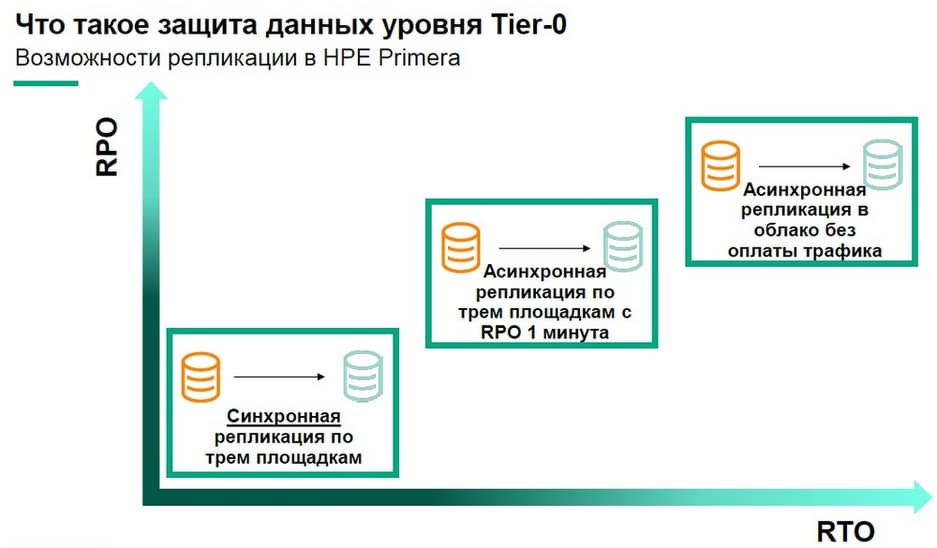 Потому что в Primera доступна синхронная репликация сразу по трем площадкам, в Nimble по трем площадкам делается только асинхронная репликация, такое же есть и в 3PAR. Primera может делать асинхронные реплики примерно на порядок быстрее, чем это может сделать 3PAR. Естественно здесь есть ограничение со стороны каналов передачи данных, но делать копии раз в минуту и отправлять их в сжатом виде на внешнюю площадку можно, если канал позволяет.