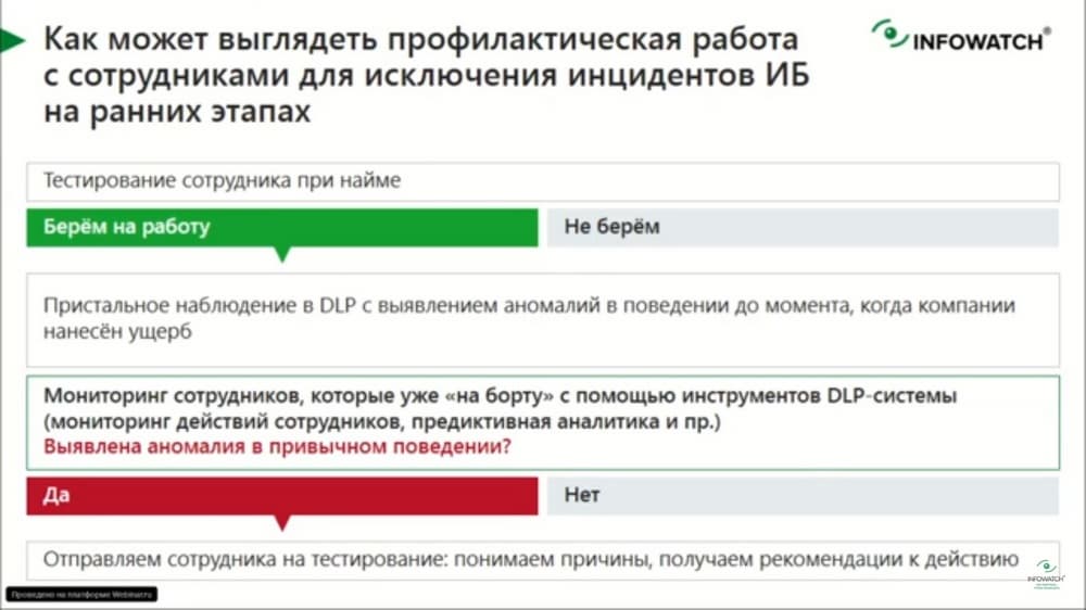 «Умышленное нанесение ущерба» – это направляется в ИБ-службу для контроля и наблюдения за этими сотрудниками, а выгорание направляется в HR-департамент.