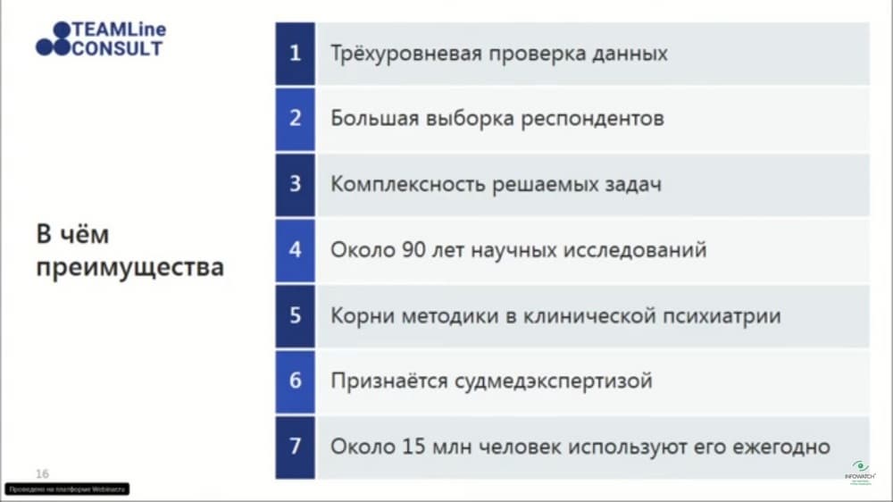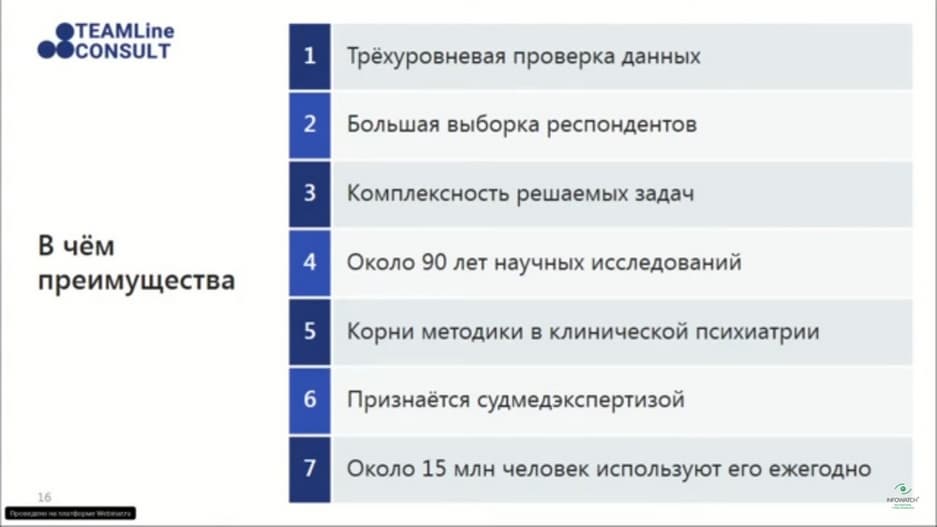 Это многофункциональный тест, который дает целый комплекс параметров, с которыми потом работают в рамках персонала, как HR так и ИБ-службы. Этот тест в определенной степени может заменить детектор лжи, потому что внутрь теста уже встроены три шкалы для проверки достоверности данных.