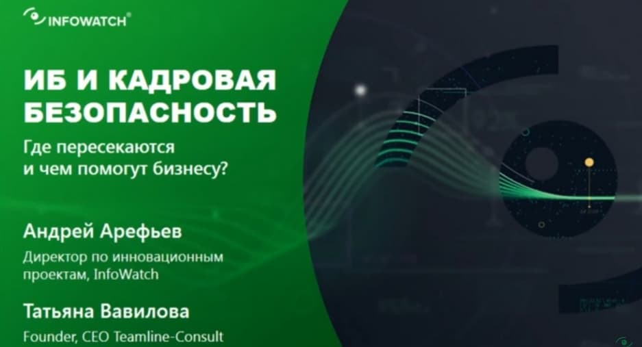 Сегодняшнее мероприятие будет посвящено информационной безопасности в аспекте кадровой безопасности, где они пересекаются и чем могут помочь бизнесу. Вести его будут Андрей Арефьев, директор по инновационным проектам компании InfoWatch и Татьяна Вавилова, основательница компании Teamline-Соnsult.