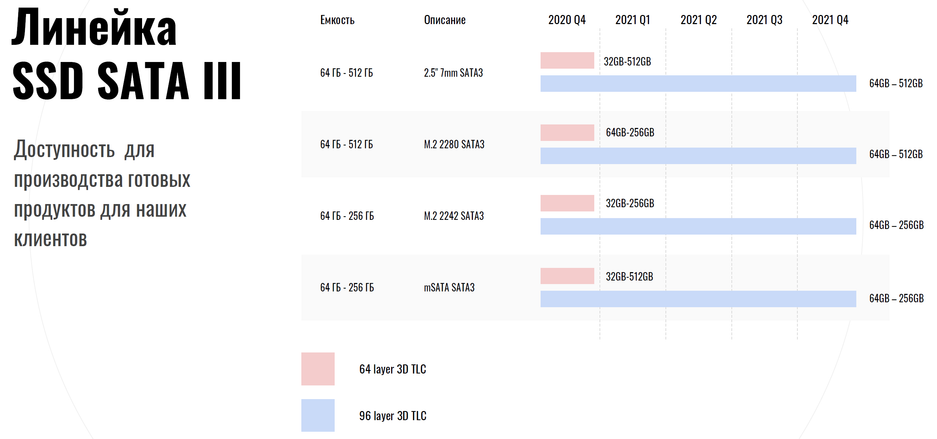 Ну и еще один важный момент — продолжение поддержки и производства 4 типов SATA SSD: 2,5 дюйма, M.2 2242, M2 2280 и mSATA.