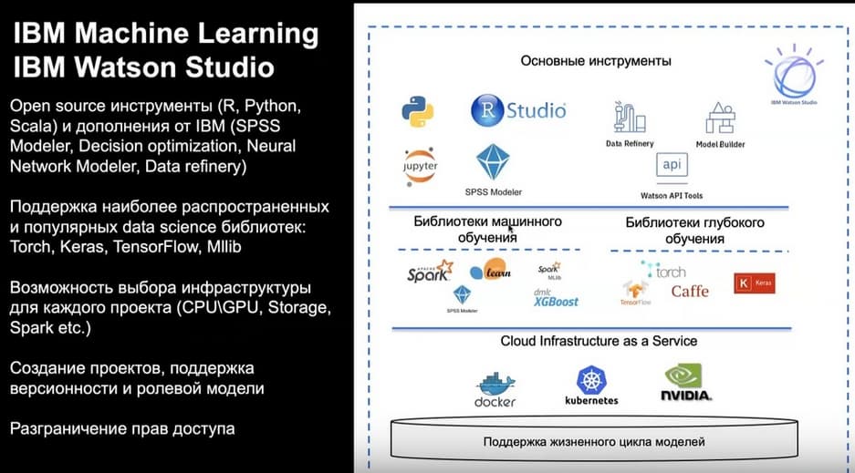 Таких задач – десятки, моделей – десятки, людей, которые этим занимаются – десятки, все это надо администрировать: подготавливать данные, изучать модели, запускать модели, писать отчеты по этим моделям, но эти сотрудники должны работать с понятным и прозрачным инструментом. Как раз это все обеспечивает IBM Cloud Pak for Data. Если есть желание с помощью этого инструмента управлять энтропией данных, пожалуйста, можно и так. Хотите работать не с программистами, а с математиками – пожалуйста.