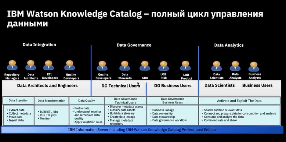 Для тех, кто управляет данными, т.е.CDO, им видны все эти отчетности, все для них прозрачно. Блок Master Data Management он пока не входит в IBM Cloud Pak for Data.