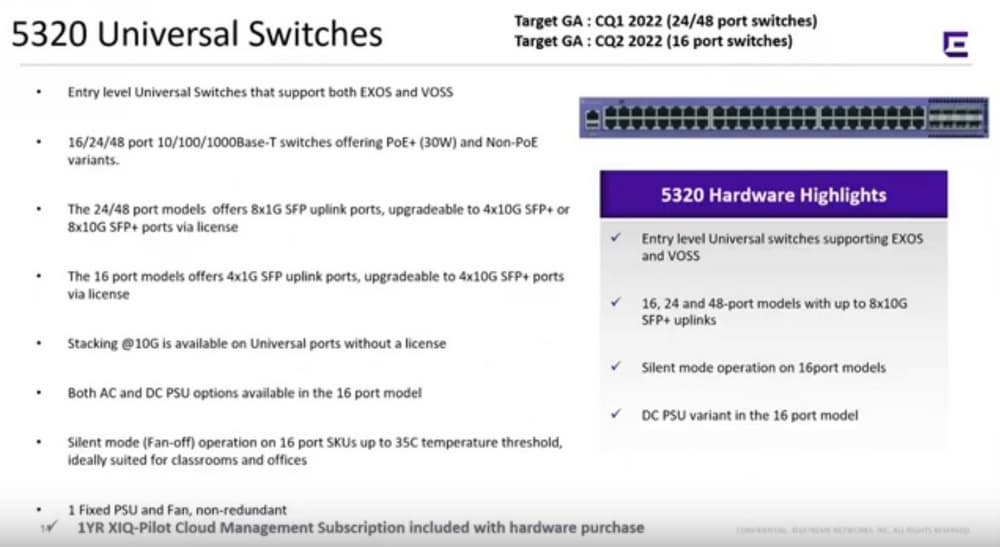 Эти коммутаторы будут доступны начиная с марта 2022 года, так что это очень новые аппаратные модели Extreme Networks.