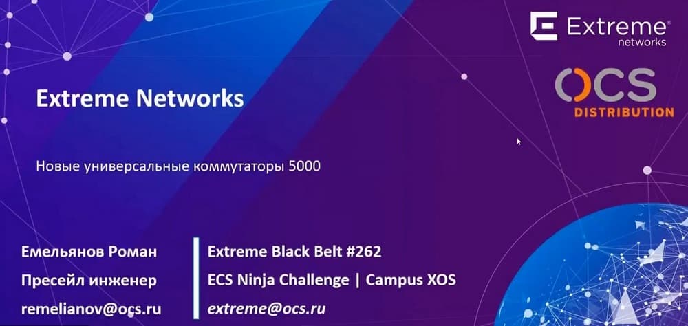 Сегодня речь пойдет о новой линейке компании Extreme Networks – универсальных коммутаторах 5000 серии. Спикером здесь выступил Роман Емельянов, presales-эксперт сетевых линеек, OCS Distribution. Он расскажет о ключевых особенностях новых коммутаторов, двух операционных системах и принципах их работы, как они помогут развернуть надежную и высокоскоростную сеть, которой не страшны задержки отклика и отказы в доступе.