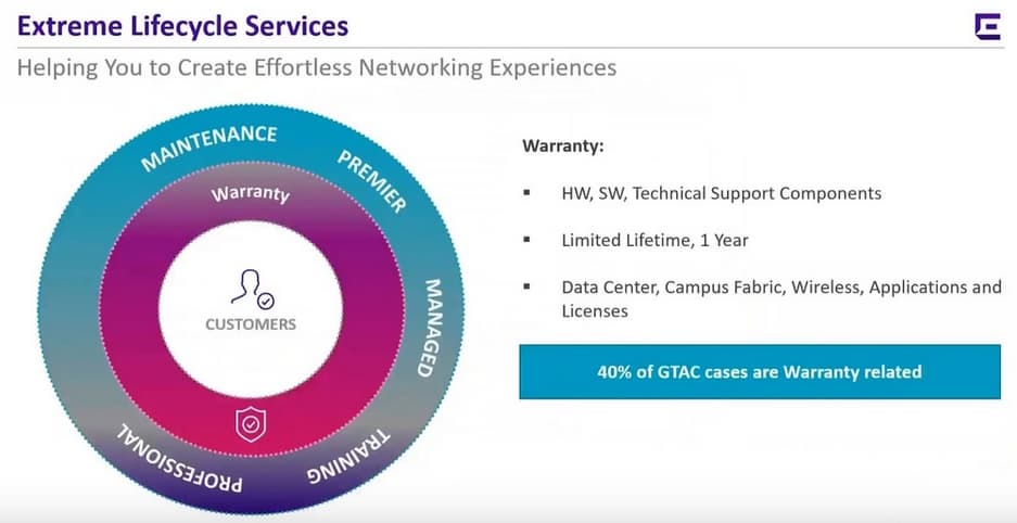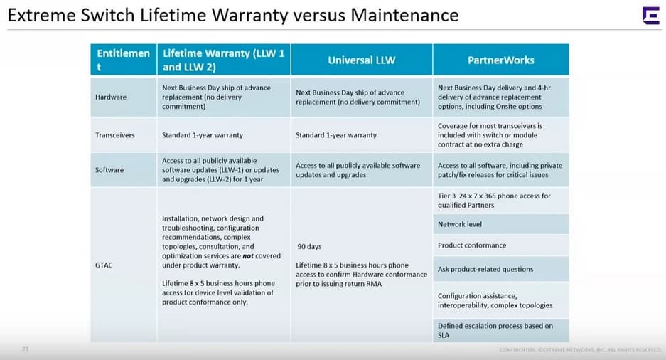 На эти коммутаторы немного изменилась гарантия. На все эти коммутаторы идет ограниченная пожизненная гарантия, это значит что даже если у вас нет активного сервиса, коммутатор заменят по гарантии в течении многих лет, до того момента пока компания Extreme Networks не выведет коммутатор из жизненного цикла. По правилам компании, это не менее 5 лет после снятия с продаж.