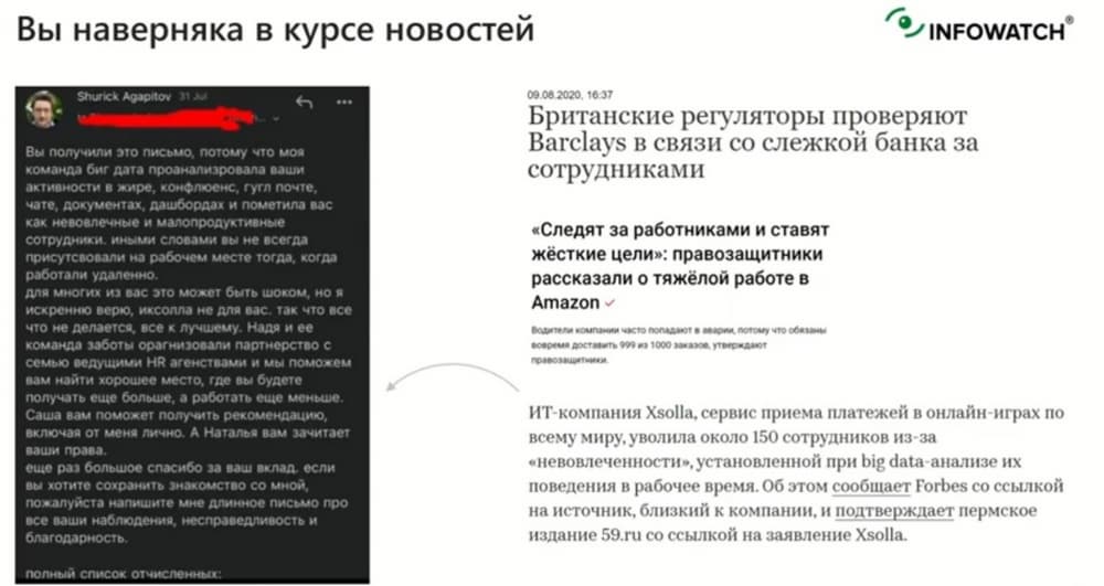 Вы наверняка слышали о событии, информация о котором изображена на представленном выше слайде. Компания Barclays – один из крупнейших финансовых конгломератов в Англии занялась мониторингом действий своих сотрудников. Совсем недавно была публикация, в которой давались советы как работая удаленно одновременно работать на несколько работодателей.