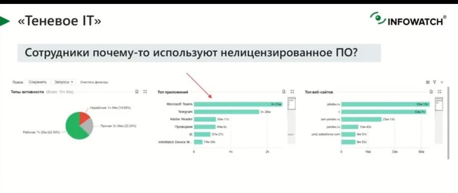ИТ-подразделение интересует теневое ИТ, им нужно понять, почему сотрудники используют нелицензионное ПО, и есть ли такие факты. Если сотрудникам в новых условиях предоставили корпоративное средство видеоконференцсвязи, то почему они по-прежнему используют какой-то Google. Почему звонят через Telegram? Это им неудобно? У них проблемы с аппаратной частью? Они не ознакомились с инструкцией? Они не прочитали письма, которые им посылали? И имеет ли тогда смысл тратиться на эту лицензию? Это вопрос, на который можно попытаться ответить, и этим помочь ИТ-подразделению.