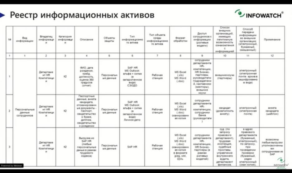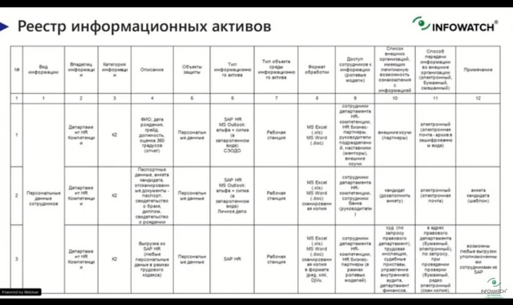 Чтобы эффективно защищать, надо четко понимать что мы защищаем, для этого следует провести скрупулезное обследование информации, которая есть в бизнес-подразделениях, как что обрабатывается. Обычно результат этого обследования собирается в некий реестр информационных активов.