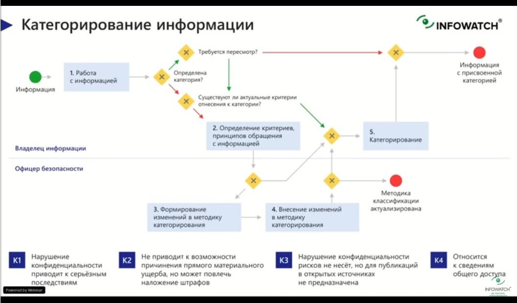 Категорирование информации - это процесс базовый. Есть некие категории, которые где-то задокументированы. Они могут называться по-разному: К-1, К-2, а могут C-1 (от слова confidentional), могут называться коммерческой тайной, персональными данными и т.д. Но категорирование информации это в принципе очень важно для того, чтобы люди понимали, как работать с той или иной информацией. Когда категории есть на бумаге - это хорошо, но зачастую случается, что люди неверно проставляют категорию, не понимают, к какой категории отнести информацию и не знают, как с ней правильно работать.