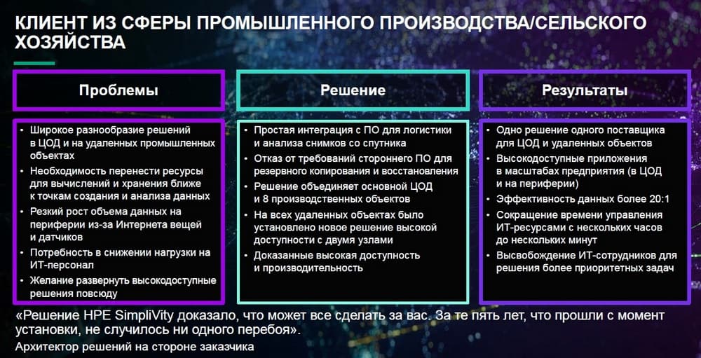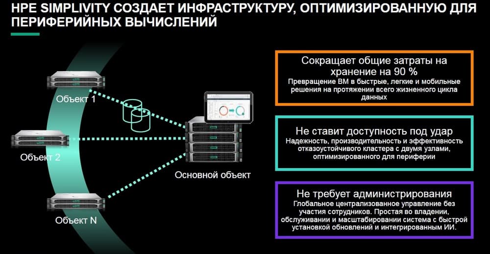 И заказчикам нужно решение для простого управления данными и их эффективной передачи в центр или облако. Таким решением выступает HPE SimpliVity.