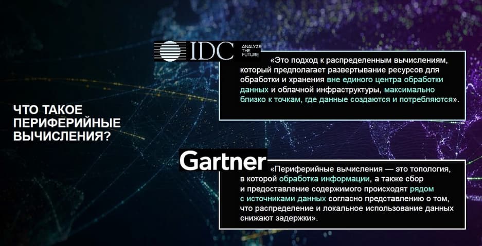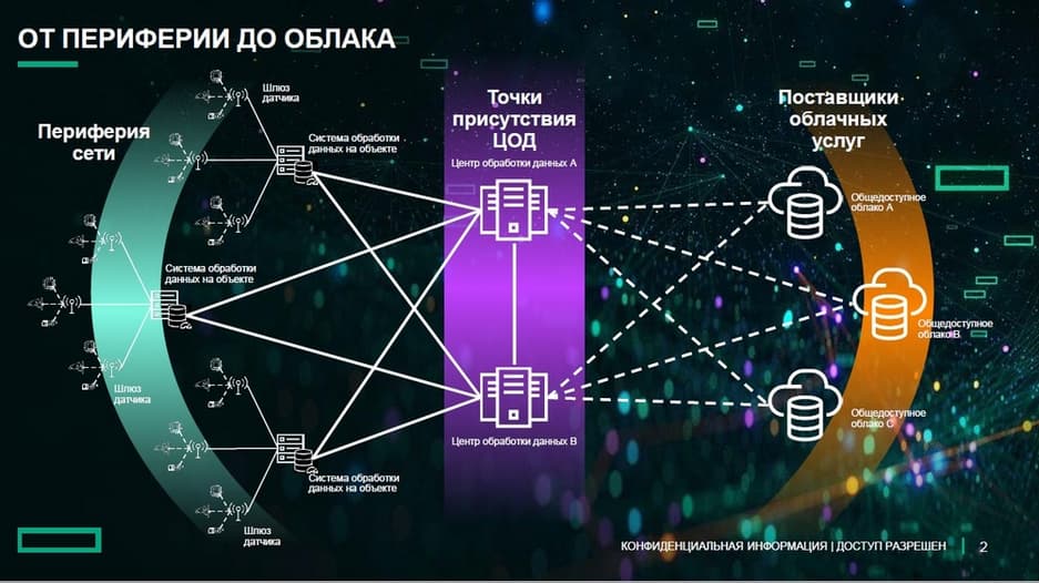 Согласно прогнозам, к 2022 году на периферии будет создаваться 75% данных. И многим клиентам, у которых есть такие данные, приходится использовать ЦОД для их анализа и обработки. Им нужна возможность архивировать данные в основных ЦОД или на периферии и создавать их резервные копии напрямую в облаке. Сейчас главное понять, что данные должны очень легко перемещаться с периферии в центр или в облако. Многие аналитики давали определение понятию "периферия".