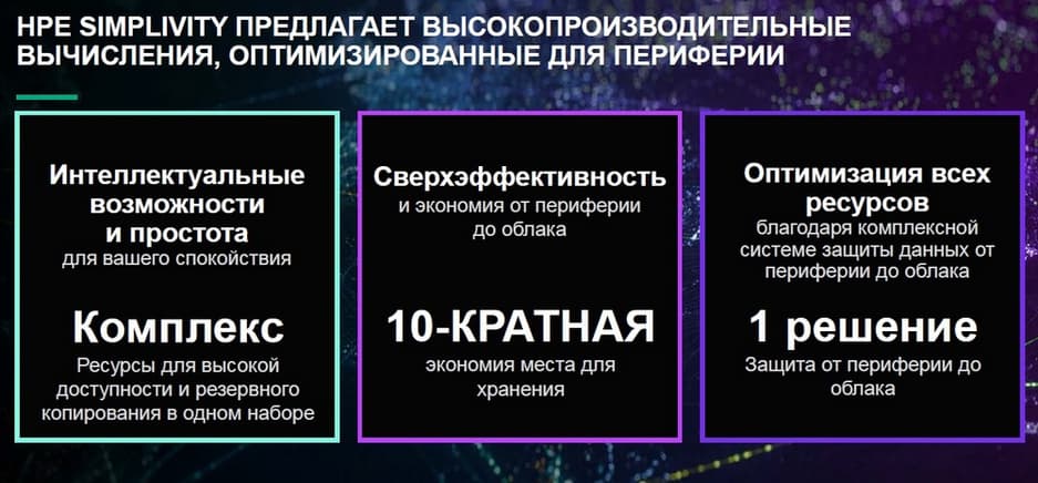 И, наконец, HPE SimpliVity оптимизирует все процессы и обеспечивает комплексную защиту данных от периферии до облака.