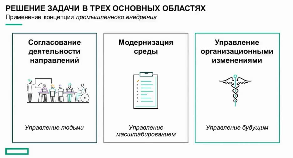 Во-первых, необходимо избавиться от организационной разрозненности, создав виртуальную команду специалистов. Это позволяет получить максимум от сотрудников. При решении задач нам не придется полагаться на изолированные группы. В виртуальной команде мы согласуем все направления, чтобы ключевые сотрудники могли работать максимально эффективно.