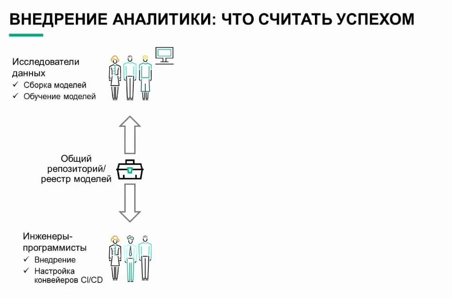 Чтобы специалист по данным мог собрать модель и где-то ее развернуть, необходимо "подружить" эти направления. Структурная разрозненность часто определяет поведение, и встает на пути прогресса. В этом заключается первая проблема, которую необходимо решить.