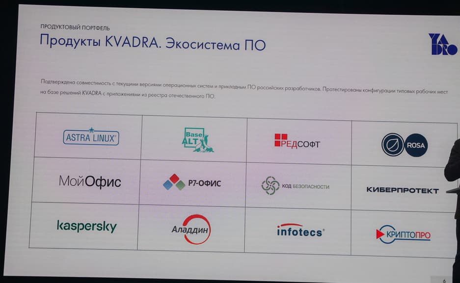Когда вендор занимался сертификацией клиентских систем продукции KVADRA, стало понятно, что упор надо делать на российский софт. На текущий момент представлена матрица того, что уже сертифицировано, проверено и работает.
