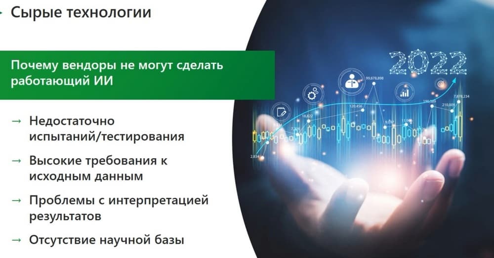 Технологии окажутся сырыми, если было проведено недостаточно испытаний и тестирований. Многие вендоры создают капризные технологии, не создают удобных юзабилити интерфейсов, которые позволяют обучать эти технологии, переобучать их и т.д. Вендоры недостаточно уделяют времени для интерпретации ИИ и результата работы попадают в некий черный ящик. Можно ли принимать решение на основе работы этого инструмента или не нельзя. И важно, чтобы вендор, занимающийся ИИ имел свою научную базу, понимал что он программирует.