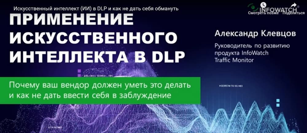 ИИ используется во многих отраслях, но на DLP рынке по этом поводу наблюдается некий скепсис. Он звучит и от вендоров, и от представителей заказчиков. Есть недоверие к технологиям ИИ.