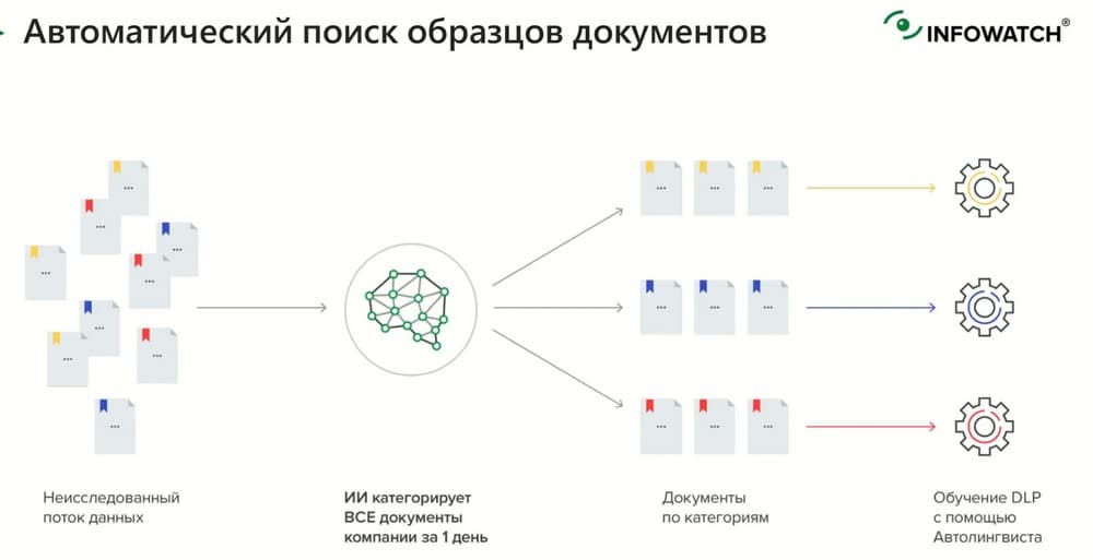 - Как с помощью искусственного интеллекта автоматизированно исследовать 100% документов компании и распределить их по категориям за 1 день. И настроить политики безопасности за пару минут.
