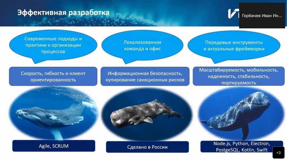 Мы работаем по системе agile scrum, у нас локализованная команда, за последние 3-4 года мы три раза переписывали мессенджер под новые современные библиотеки для того, чтобы соответствовать всем критериям современного продукта, мы не используем при проектировании устаревшие языки и библиотеки.