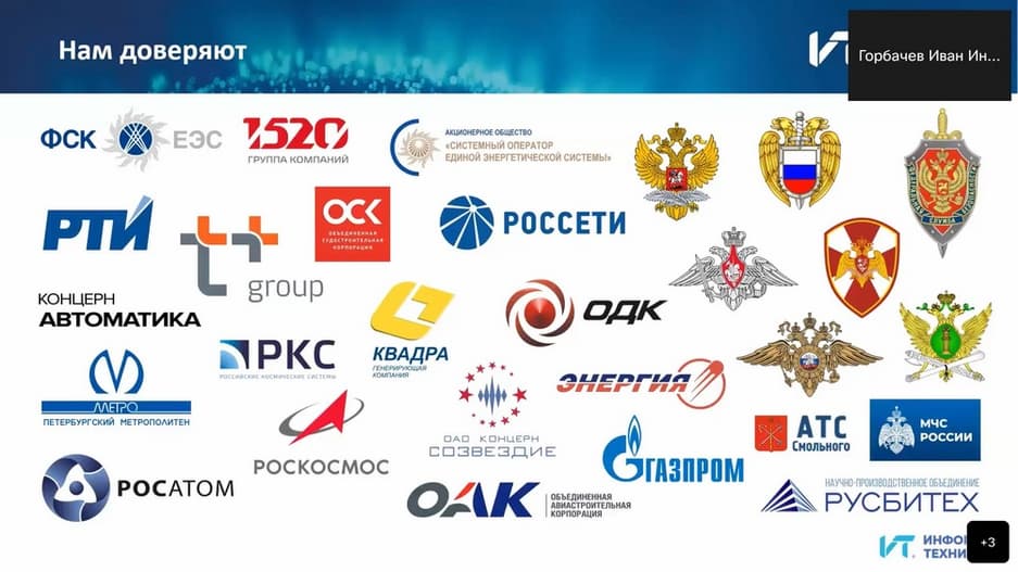 Основные заказчики группы компаний «Информтехника» представлены на следующем слайде. Это силовые структуры, госсектор, энергогенерирующие, энергетические и транспортные компании.