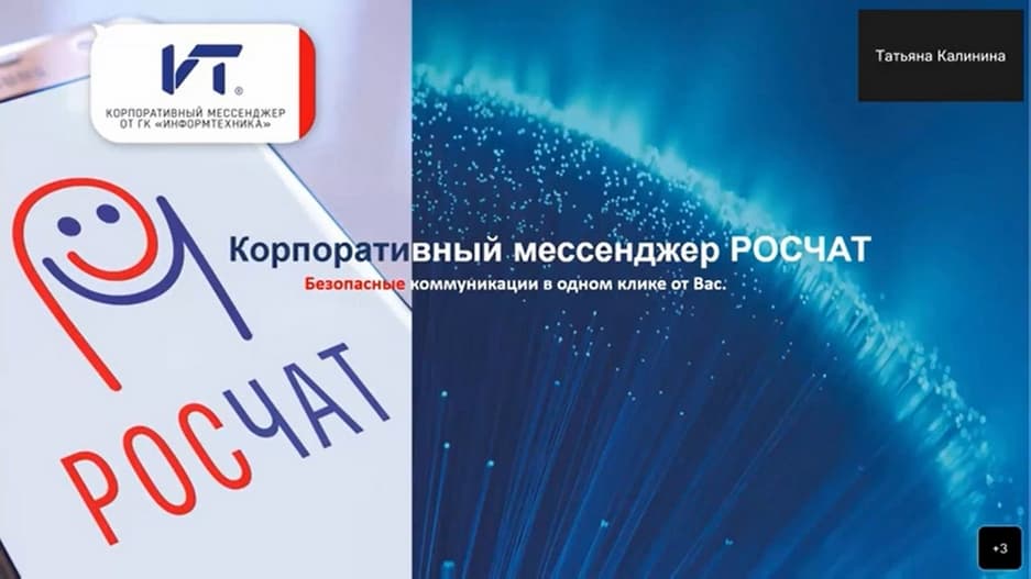 Сегодня спикер Иван Владимирович Горбачев, руководитель направления «Унифицированные коммуникации» группы компаний «Информтехника» ведет мероприятие под названием «Корпоративный мессенджер Росчат». ГК «Информтехника» - это ведущий российский разработчик и производитель современных средств связи. В рамках встречи мы поговорим о российском корпоративном мессенджере «РОСЧАТ» — единой коммуникационной платформе и системе безопасного обмена информации между сотрудниками компании.