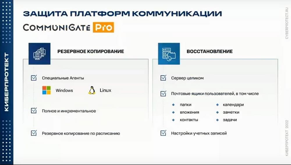 Защита платформ коммуникаций. Это история взаимодействия двух российских вендоров, две команды разработчиков объединились и сделали бэкап для CommuniGate Pro, что позволяет иметь копии такой важной системы коммуникаций.