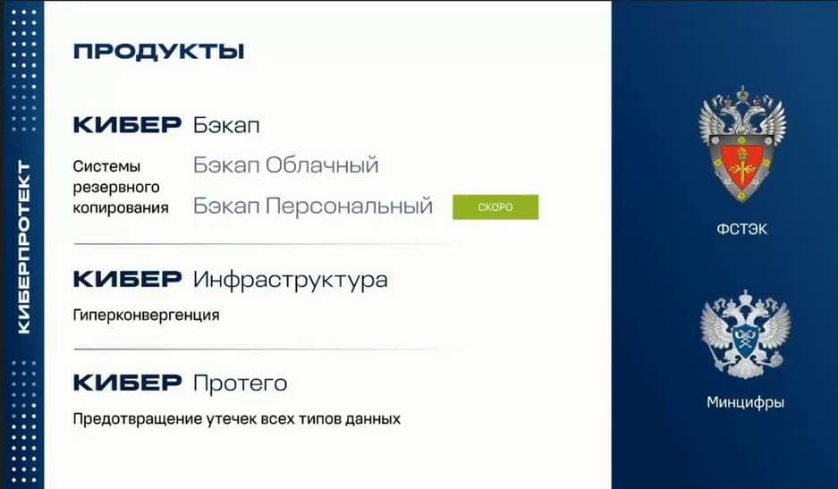 Этот сервис тоже можно предложить заказчику. Есть у компании и Гиперконвергентная инфраструктура с названием КИБЕР Инфраструктура – программное решение для создания такой инфраструктуры, этот продукт активно развивается и дополняется новым функционалом. В ближайшем релизе появится VDI. Решение КИБЕР Протего – это решение для предотвращения утечек всех типов данных.