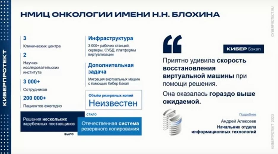 На следующем сладе представлен кейс, реализованный в НМИЦ Онкологии имени Н. Н. Блохина.