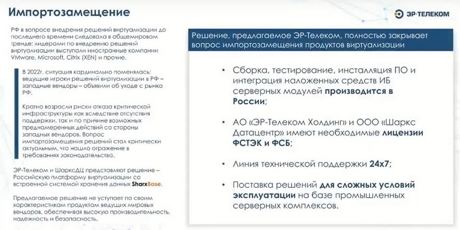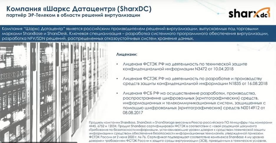 Ключевым решением «ЭР-Телеком» является платформа виртуализации SharxDS.