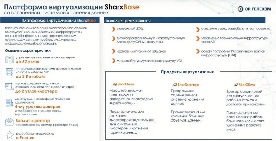 - SharxBase – масштабируемая программно-аппаратная платформа виртуализации;