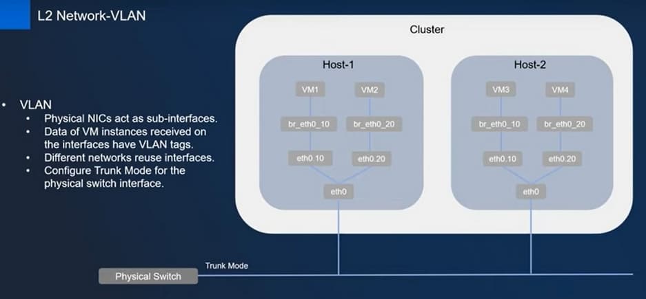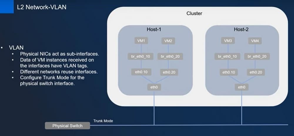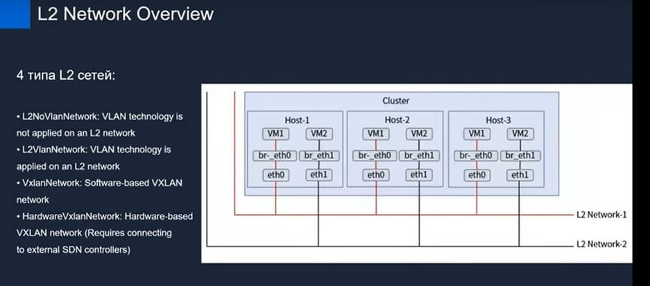 Первый тип – это L2NoVlanNetwork, когда не используется виртуализация сетей. Какие есть нюансы, касаемые построения таких сетей? Если речь идет о непосредственно комбинации L2NoVlan и L2Vlan, необходимо чтобы в физическом свиче был включен Trunk Mode.