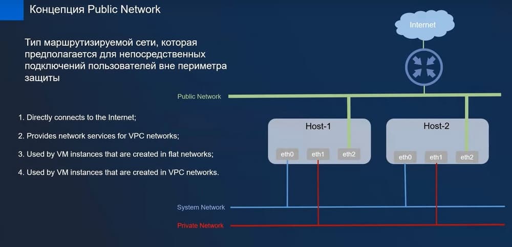 Здесь есть концепция Public Network – это маршрутизированная сеть, которая используется для подключения пользователей вне периметра защиты и для прямого доступа в Интернет.