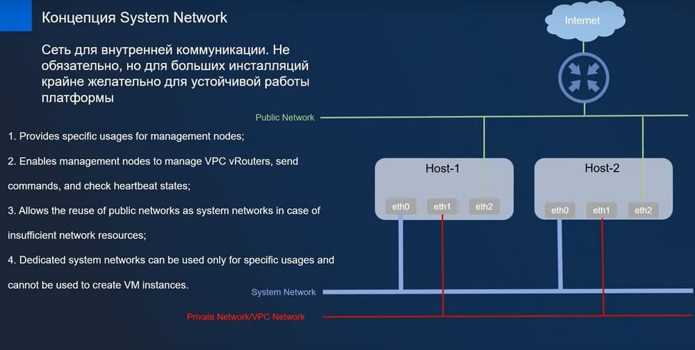 Что касается System Network, то эта сеть для внутренней коммуникации. Не обязательно, но для больших инсталляций она крайне желательна для устойчивой работы платформы.