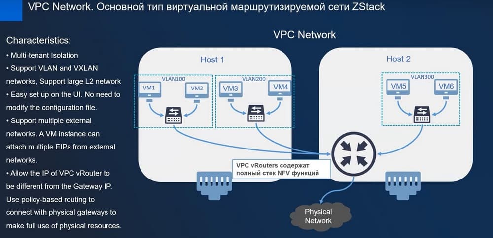 Эта технология позволяет осуществлять определенный роутинг во избежании различных проблем. Можно использовать приоретизацию роутинга. В рамках VPC Router и виртуальных сетевых адаптеров можно настроить сервис, чтобы управлять трафиком, максимально эффективно настроить пропускную способность между хостами.