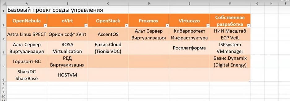 Все отечественные виртуализации построены на базе KVM, который осуществляет запуск машины, а все основные отличия – это какой базовый проект для управления хостами и виртуальными машинами используется. Есть 5 проектов в Open Source. Все они представлены на предыдущем слайде. 6-е решение, это собственная разработка компании ZStack. Самое популярное на рынке – это Astra Linux Брест и продукты, построенные на oVirt. Virtuozzo – это в чистом виде гиперконвергентное решение.