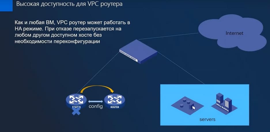 При отказе VPC Router перезапускается на любом другом доступном хосте без необходимости переконфигурации. Теперь поговорим про сетевые сервисы.